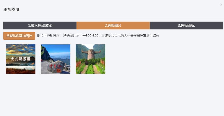 圖片熱點:點擊熱點,彈出圖片集進行展示,單張圖片最大支持2000x2000px ≤5M,超過該尺寸將被系統壓縮或者系統出錯;